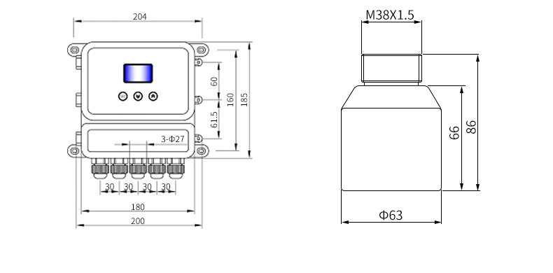 MIK-DFG分體式超聲液位/物位計是測量一個超聲波脈沖從發出到返回整個過程所需的時間。超聲波液位計垂直安裝在液體的表面,它向液面發出一個超聲波脈沖,經過一段時間,超聲波液位計的傳感器接收到從液面反射回的信號,信號經過變送器電路的選擇和處理,根據超聲波液位計發出和接收超聲波的時間差,計算出液面到傳感器的距離。分體式超聲波液位計廣泛用于罐體、水池、水庫的液位和體積測量,也可用于明渠的流量測量。