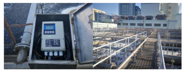 電磁流量計全部采用分體式不銹鋼304本體,本體長期浸泡在大麥污水池中;另外在總出水管道上安裝有流量計和pH計,監(jiān)測總的出水量以及出水口污水的pH值,保證整個工廠污水處理有效快速地進行。