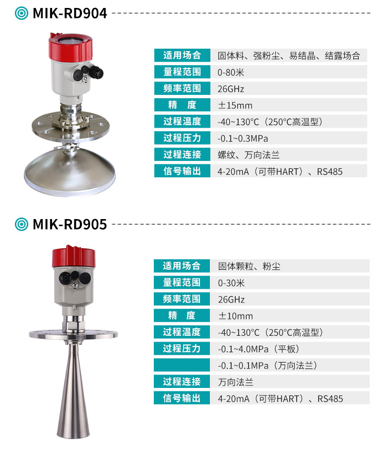 米科MIK-RD903/904/905高頻雷達(dá)料位計(jì)