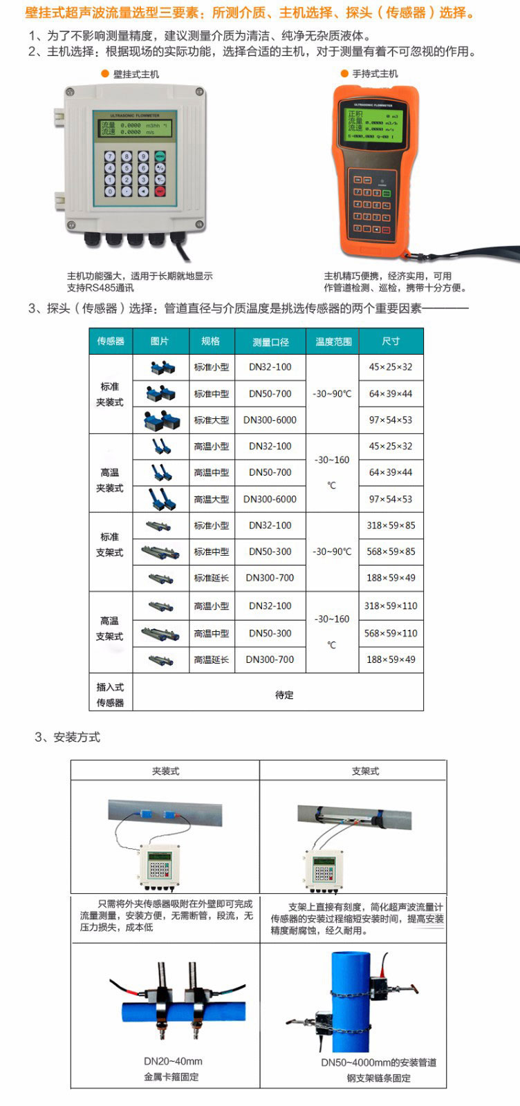 適用場(chǎng)合:超聲波熱量表是通過(guò)超聲波的方法測(cè)量流量及顯示水流經(jīng)熱交換系統(tǒng)所釋放或吸收熱能量的儀表。它通過(guò)兩種傳感器測(cè)得的物理量——熱載體的流量和進(jìn)出口的溫度,再經(jīng)過(guò)密度和熱焓值的補(bǔ)償及積分計(jì)算,才能得到熱量值。