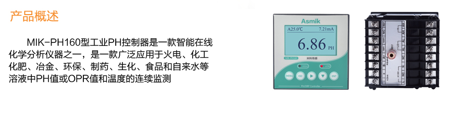 適用場合:紡織印染、工業廢水、自來水廠、污水處理廠、電鍍廢水等液體PH測量。 MIK-PH160儀表實現4-20mA信號輸出、繼電器報警輸出以及RS485通訊,搭配PH上位機軟件,可實現對多臺PH控制器聯機進行系統性監控的功能。