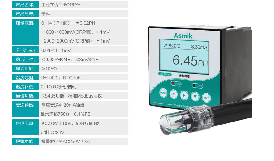 米科MIK-pH6.0高精度工業在線pH/orp控制器