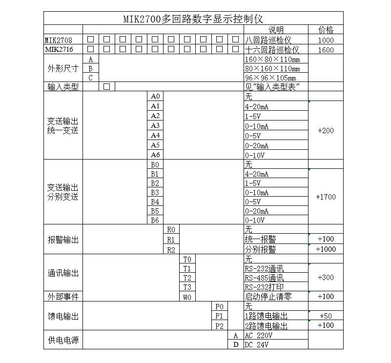 多回路數字顯示控制儀采用了表面貼裝工藝,全自動貼片機生產,具有很強的抗干擾能力。本儀表支持多種信號類型輸入,可與各類傳感器、變送器配套使用,實現對溫度、壓力、液位、速度、力等物理量的測量顯示,可巡回檢測8~16路測量信號,帶8路或16路“統一報警輸出”、“16路分別報警輸出”、統一變送輸出”、“8路分別變送輸出”功能、485/232通訊等輸出功能,適用于需要進行多測量點巡回檢測的系統。